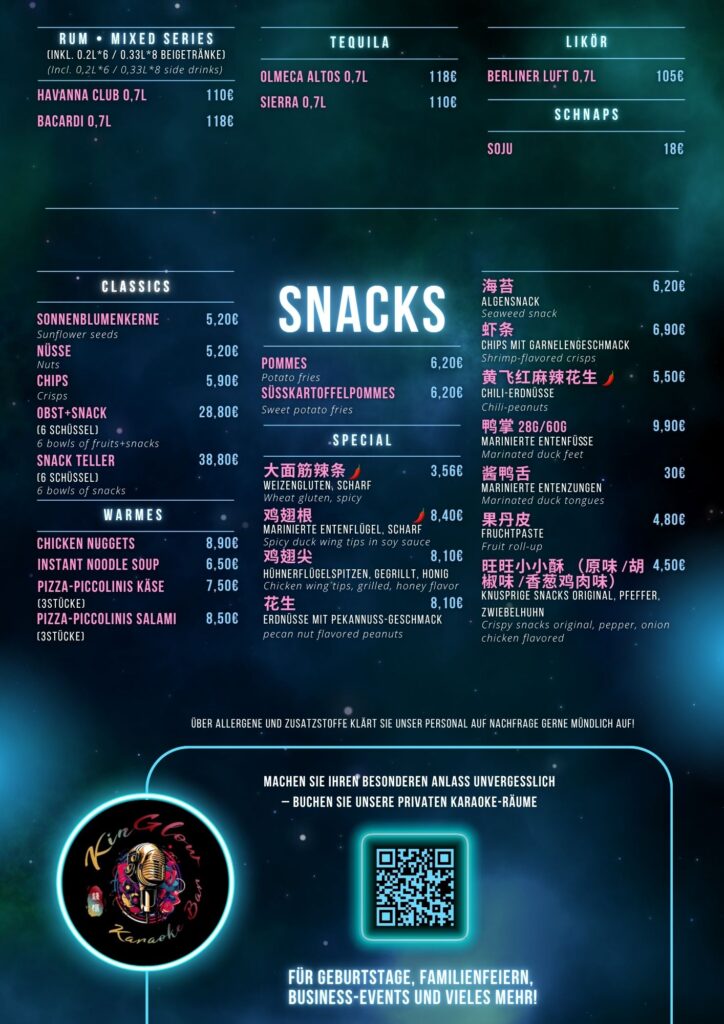 Getränke und Speisen