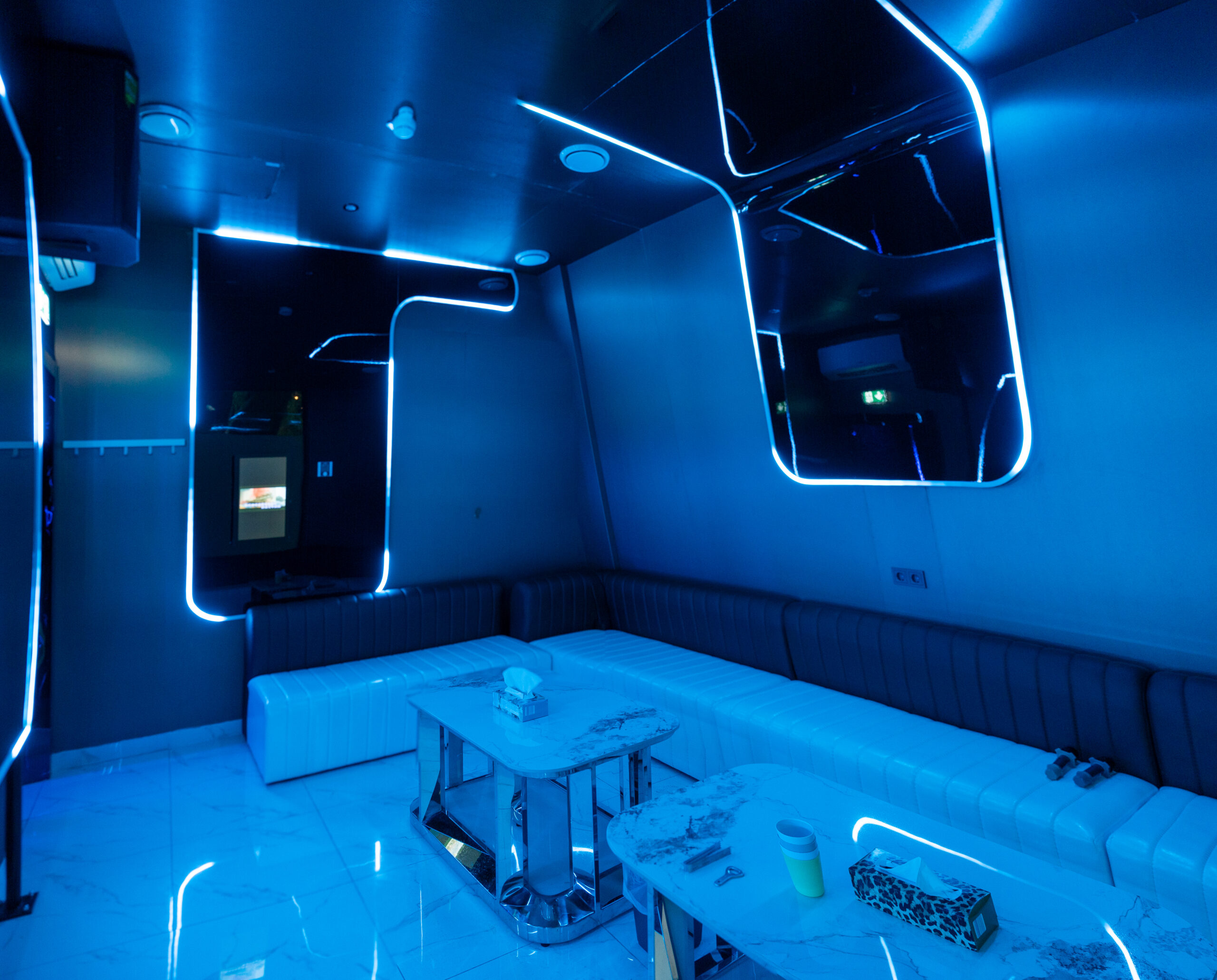 Diese Räume mittlerer Größe und bringen Energie in jede Feier – moderne, klimatisierte Räume für Gruppen von bis zu 12 Personen, ideal für ausgelassene Karaoke-Abende mit Freunden oder Kollegen – in einem Raum sogar mit Discolampe.